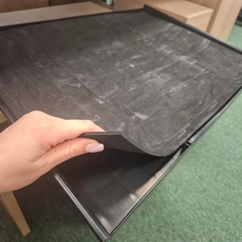 The concept is straightforward: a rigid, injection-molded ESD polypropylene tray (View ESD PP Tray Products) provides structural integrity and stackability, while a 3mm anti-static EVA foam sheet (View ESD EVA Foam Products) lines the bottom surface to provide cushioning, surface protection, and an additional ESD-safe contact layer.